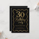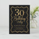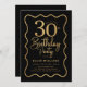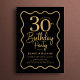 Black gold 30th birthday party invitation. Trendy modern design, perfect for a stylish men's or women's bday celebration. Features wavy border and script font. Customize with your own details. Message me if you need custom age. Printed Zazzle invitations or instant download digital printable template.