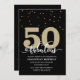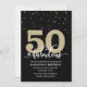 Elegante negro con purpurina de oro 50 y fabulosa invitación de fiesta de cumpleaños con acentos purpurinas. Añada los detalles de su fiesta utilizando nuestra plantilla sencilla.