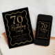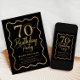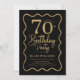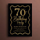Black gold 70th birthday party invitation. Trendy modern design, perfect for a stylish men's or women's bday celebration. Features wavy border and script font. Customize with your own details. Message me if you need custom age. Printed Zazzle invitations or instant download digital printable template.