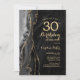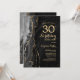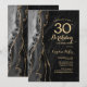 Invitación a la fiesta de cumpleaños número 30 del oro negro. Elegante diseño moderno con fondo geodésico de mármol agate acuarela, oro falso purpurina y tipografía de escritura. La carta de invitación de moda es perfecta para una elegante celebración del cumpleaños de las mujeres. Invitaciones Zazzle impresas o una plantilla imprimible digital de descarga instantánea.