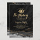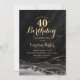 Invitación a la fiesta de cumpleaños 40 años de color negro y oro. Elegante diseño moderno con fondo geodésico de mármol agate acuarela, oro falso purpurina y tipografía de escritura. La carta de invitación de moda es perfecta para una elegante celebración del cumpleaños de las mujeres. Invitaciones Zazzle impresas o una plantilla imprimible digital de descarga instantánea.
