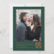 El borde izquierdo de esta elegante y moderna invitación a la boda incluye un borde de batido de color negro con un falso purpurina de oro. El texto del personalizable combina la escritura a mano de color dorado, las fuentes de copperplate y cursiva sobre un fondo verde oscuro. Agregue su foto favorita al reverso, junto con texto adicional y un código QR para enviar invitados a su sitio web boda.