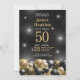 ¡¡¡Es la estrella de la noche!!! Esta fabulosa invitación a la fiesta de cumpleaños número 50 de los hombres con un borde inferior de globos negros y dorados, el número 50 en oro es perfecto para celebrar al hombre en el cumpleaños número 50 de tu vida. Es tradicional y clásico, fresco, moderno y contemporáneo. Para el personalizar, simplemente seleccione "Personalizar esta plantilla" y escriba su información. ¡Es muy fácil!