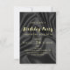 Elegant black birthday party invitation with a luxurious black silk satin fabric background, soft flowing folds and realistic texture. Premium gold typography with metallic foil effect. Handwritten cursive script for the main title “Birthday Party,” combined with modern minimalist sans-serif uppercase text for details. Centered layout, balanced spacing, refined and classy look. High contrast black and gold color palette, upscale, formal, and sophisticated celebration theme. No photos, no people, no illustrations. Print-ready, clean margins, professional invitation design.