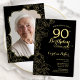 Invitación Black Gold Floral Foto 90 cumpleaños