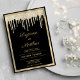 This luxury, modern, minimalist black and gold glitter drips border Wedding Invitation is inspired by the simple and elegant, but with subtle hints of contemporary influence. It features a glam gold glitter drips border on a simple black background. This classic and luxurious design is sure to be a big hit with all your guests. All designs are printed.