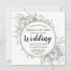 Este diseño presenta peonías y follaje en un estilo de dibujo moderno y minimalista que recuerda a la tela floral. Los círculos con delineado dorado acentúan el texto correspondiente con serios clásicos y una tipografía cursiva manuscrita. "Boda" se exhibe en el centro. La parte trasera de la invitación a la ducha de novia tiene la "Recepción de la ceremonia de seguimiento". También hay mucho espacio en la parte posterior para añadir detalles o texto adicional.