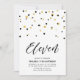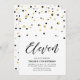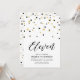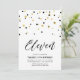 Celebra tu día especial con esta simple invitación mínima a la fiesta de cumpleaños número 11. Este diseño cuenta con un elegante guión de letras con un confeti en forma de hexágono con una combinación en color negro y oro. Más diseños disponibles en mi tienda BaraBomDesign.