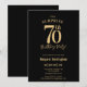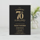 The invitation features a striking black and gold color palette which provides a luxury look. A sophisticated blend of the custom Surprise 70th Typography with the Handscript "Birthday Party" carries a vibe of "Classic Glamour," conveying that the event will be a formal yet joyous occasion.