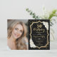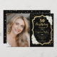 Elegante invitación floral de 50 años con tu foto. Diseño blanco y negro de cristal con oro falso purpurina. Cuenta con rosas blancas, fuente de guión y confeti. Perfecto para un elegante fiesta de celebración de cumpleaños. Personaliza con tus propios detalles. ¡Se puede personalizar para cualquier edad! Invitaciones Zazzle impresas o una plantilla imprimible digital de descarga instantánea.