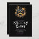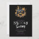 Esta invitación a la fiesta de Halloween marca un tono espeluznante y elegante con su fondo negro y las palabras "Fiesta espeluznante" en una revista espeluznante o tipo de letra cortado de horror en blanco y morado. El tipo de letra agrega un toque escalofriante, perfecto para una celebración de Halloween. En el centro de la invitación se encuentra una linterna de color negro y espeluznante, rodeada de flores y hojas de oro y gris, creando un punto focal tremendamente hermoso. La combinación de colores negros, blancos, violetas, dorados y grises crea un aspecto llamativo y evocador, perfecto para una celebración de Halloween con un toque de elegancia. La linterna negra jack-o' añade un sentido de misterio y espanto a la invitación, mientras que las flores y hojas doradas y grises le agregan un toque de glamour. Juntos, estos elementos crean un diseño que es a la vez espeluznante y sofisticado, sentando las bases para una memorable fiesta de Halloween. El fondo de la invitación sigue la temática con su elegante fondo negro, asegurando un aspecto cohesivo y elegante. Ya sea que esté organizando un atormentado fiesta o una sofisticada pelota de máscaras, esta invitación seguramente marcará el tono perfecto para su celebración de Halloween. Invite a sus invitados a que se unan para una noche de trucos y dulces con esta impresionante invitación a la fiesta de Halloween.