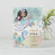 A las niñas les encantan las cosas mágicas. Esta invitación de cumpleaños número 5 de sirena y delfín bajo el mar encantará a los invitados con un toque caprichoso, con sirena, delfín, tortuga y conchas marinas, en hermosos colores rosa, azul verde y violeta pálido. Un mundo submarino de magia y misterio.