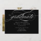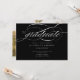 Black Modern Elegant Script Black White Graduation Party Invitation incluye un guión hermoso y elegante, junto con los detalles de su fiesta, y su foto completa en la parte posterior.