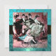 Diseño elegante, con clase y monograma único con bicicletas clásicas en colores azul aqua, turquesa, verde azulado, blanco y rosa antiguo con vibrantes piedras preciosas 3D aguamarina y amatista, fácilmente personalizable con tu texto e iniciales como ceremonia de boda de verano, anuncio nupcial, tarjeta de lugar, salva la fecha, tarjeta de agradecimiento, duchas de novia, duchas de compromiso romántico, aniversarios o cualquier evento de boda que desees. Diseño gráfico digital 3D por Bulgan Lumini (c)