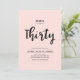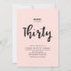 Celebra tu día especial con esta sencilla y elegante invitación de cumpleaños número 30. Este diseño presenta una elegante escritura a mano con un diseño limpio sobre un fondo rosa. Más diseños disponibles en mi tienda BaraBomDesign.