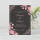 This wedding invitation features soft pink flowers set against a deep black background, creating a modern and romantic look. The floral design adds a gentle touch of color while keeping the overall style clean and stylish. The layout is clear and easy to read, making your wedding details stand out beautifully. This invitation is a lovely choice for couples who want a floral design with a bold black base and soft pink tones for their special day.