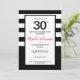 Celebra su cumpleaños número 30 con esta invitación a la franja blanca y negra de la moda. El rosa puede cambiar de color, pero el rosa de moda es impresionante. Personalizar cada campo con los detalles del fiesta.