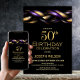 Invitación Black Purple Gold Fiesta de cumpleaños número 50