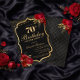 Celebrate in unforgettable style with this dramatic black and gold 70th birthday invitation. Featuring an elegant ornamental frame, rich red florals, and a luxe-inspired layout, this design is perfect for a sophisticated evening celebration.