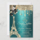Invitación Black Roses Eiffel Tower Gold Drips Green Sweet 16