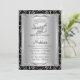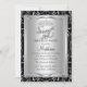Invitación de cumpleaños Sweet 16 negra y plateada. Diseño elegante de damasco y tiara. Tenga en cuenta: todas las imágenes planas, no tienen joyas reales.