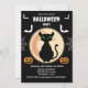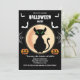 Invitación Black Spooky cat ojos verdes con luna Halloween
