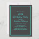 Make a bold and elegant statement with this sophisticated milestone birthday invitation, featuring a deep charcoal background accented by vibrant aqua typography. A sleek double-line border frames the design, while the combination of flowing script lettering and clean serif text creates a modern yet timeless look. Perfect for celebrating a woman’s 40th birthday or any milestone age, this invitation is ideal for evening gatherings, cocktail parties, or upscale home celebrations. The high-contrast color palette ensures excellent readability while showcasing the honoree’s name, event details, and RSVP information in a polished, refined layout.