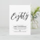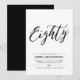 Celebra tu día especial con esta sencilla invitación de cumpleaños 80 minimalista. Este diseño cuenta con un script de letra elegante "Ochenta" con una combinación de colores blanco y negro. Más invitaciones de cumpleaños de adultos y suministros para fiestas están disponibles en mi tienda BaraBomDesign.