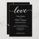 Simple, elegant black and white motif with a modern "Love" calligraphy script. Personalize this elopement wedding reception invitation with the bride and groom's names all the party details about the elopement and wedding reception. Include a wedding website. This chic and elegant layout design is easy to customize.