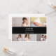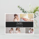 Welcome your most awaited miracle in style with this black white simple photo baby announcement card. The design features a photo collage as a placeholder to be replaced with your own. The elegant dark rectangle across the template leaves enough room to include your little one's names, birthdate, birthplace, etc.
