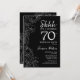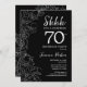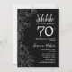 Invitación de cumpleaños 70 de Black White Surprise. El diseño femenino moderno minimalista presenta acentos botánicos y tipografía. Sencilla tarjeta de invitación floral perfecta para una elegante celebración de cumpleaños sorpresa femenina. Invitaciones Zazzle impresas o una plantilla imprimible digital de descarga instantánea.