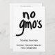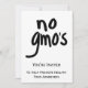 Esta invitación es genial para un evento, reunión o recaudación de fondos para cambiar las leyes para etiquetar los alimentos genéticamente modificados. Ayudar a crear conciencia sobre los alimentos modificados genéticamente y los riesgos para la salud asociados a estos alimentos y a promover alimentos saludables. Esta invitación incluye las palabras "no gmo's" en negrita y negro sobre un fondo blanco en un lado. Las palabras de abajo son personalizable. La información del otro lado de la invitación proporciona los detalles del personalizado para su evento. Los campos se pueden agregar o eliminar. Se puede cambiar el color del fondo blanco. Los alimentos genéticamente modificados están prohibidos en la Unión Europea, pero se venden en los Estados Unidos sin etiquetarlos. Digan "No a los OGM" para comida saludable y ambiente. Algunos estados están empezando a requerir etiquetas, pero la mayoría no lo están en este momento. Personalizable completo.