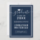 Esta sencilla invitación blanca y dorada presenta "graduados" con letras a mano.