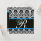 Invitación BLANCO NEGRO AZUL DAMASCO MONOGRAMA Zafiro Dorado