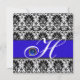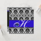 Invitación BLANCO NEGRO AZUL DAMASK MONOGRAM Sapphire Plata