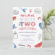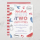 Blanco Rojo y DOS (juego de palabras en blanco y azul rojo) cocina o diseño de invitación temática al aire libre para un niño, chica o gemelos (incluso trillizos)