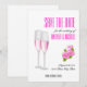 Diseño femenino hermoso que combina fondo blanco elegante con tipografía moderna asombrosa y flores rosadas, así como copas de champán. La tarjeta de Save The Date para su boda es importante y merece la mejor. Este diseño elegante y lujoso será perfecto.
