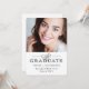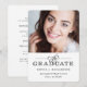 Esta elegante versión actualizada en blanco y negro de una invitación clásica a una fiesta de graduación presenta caligrafía y tipografía modernas sobre un fondo blanco, con un lugar destacado para la foto del graduado. Toda la información de su fiesta va en la parte posterior.