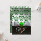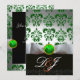 INVITACIÓN BLANCO VERDE DAMASCO & MONOGRAMA DE TRÉBOL DE ORO