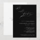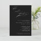 Un moderno guión giratorio de caligrafía contra un fondo negro es una manera simple y elegante de invitar a familiares y amigos a su cena de ensayo "La noche antes". Se combina bien con cualquier tema y lugar moderno de boda. Personalizar fácilmente su importante información de elección, incluyendo su Monograma en la parte posterior