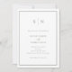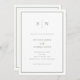 Estas elegantes y modernas invitaciones a una boda presentan un sencillo diseño de texto minimalista en blanco y verde sabio, con un marco clásico en el borde. Añada sus iniciales o su monograma para hacerlas completamente propias. En la parte trasera de las invitaciones hay una sala para los detalles de tu boda (información de recepción, alojamiento de hotel, etc.) y rsvp (incluido un escaneado código QR para que los clientes puedan responder en línea a través de tu sitio web boda).