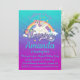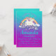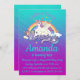 Esta alegre invitación al personalizable de cumpleaños cuenta con un magnífico personalizado unicornio y un agradable fondo degradado de verde azulado y morado.
