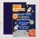 Launch your celebration in style with this personalized outer space birthday invitation for kids. Featuring rockets, planets, stars, and a bold galaxy background, this “Blast Off” space theme birthday invite is perfect for boys who love space, astronauts, and adventure.