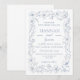 This romantic wedding invitation features a powder blue hand‑drawn floral border framing classic typography on a crisp white background, creating a whimsical garden‑inspired design that feels soft, airy, and perfect for timeless celebrations.