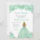 Esta dulce invitación de dieciséis años cuenta con flores florales de color verde a la menta purpurina y una hermosa princesa con el pelo rubio y un vestido elegante. Es perfecto para una dulce fiesta de 16 años.