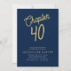 Invitación Blue 40th Birthday Gold Script 40 Cumpleaños