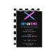Gender reveal party invitation featuring blue and pink lightsabers crossed over a starry background with playful text 'He? or She?' and event details."