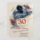 Invitación Blue and Red Rose Gothic 30 cumpleaños