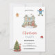 This cute and festive corporate Holiday office Party invitation is perfect for the holiday season. It features cartoon illustrations of a gingerbread man in front of his gingerbread house with candy canes, a Christmas tree sugar cookie, icing decorations, lollipop, gumdrops, and mint candy on top of a white and blue snowy and icy background. It's adorable, sweet, original, and unique; the perfect design to put your employees, colleagues, and business partners in the holiday spirit.