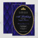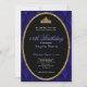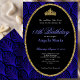 This elegant blue and black art deco 18th birthday invitation has blue arches, a gold tiara crown, and a gold glitter oval with a personalizable template to create your own message. The invitation template is customizable in the listing editor and is also available as a digital download that's printable after you personalize it. It's a classic style that's perfect for a formal event to celebrate a milestone birthday.